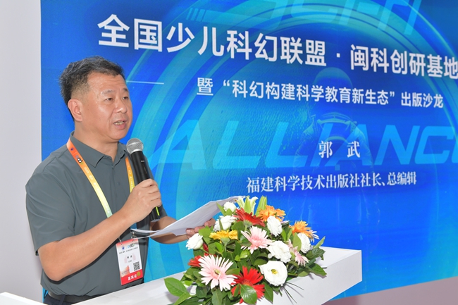 活動由作家、編劇劉錦孜主持,福建省委宣傳部副部長、一級巡視員陳添貴,海峽出版發(fā)行集團(tuán)黨委委員、副總經(jīng)理兼總編輯陳遠(yuǎn),福建省出版物發(fā)行業(yè)協(xié)會會長孫強(qiáng),重慶郵電大學(xué)傳媒藝術(shù)學(xué)院院長郭宇,重慶市青少年作家協(xié)會黨支部書記、副主席陳新,福建科學(xué)技術(shù)出版社社長兼總編輯郭武,全國少兒科幻聯(lián)盟創(chuàng)始人尹超、陸楊等代表作家,以及來自出版界、科幻界、教育界及文化界代表40余人參加了活動,共同見證這一少兒科幻出版與科學(xué)教育跨界融合的重要時刻。